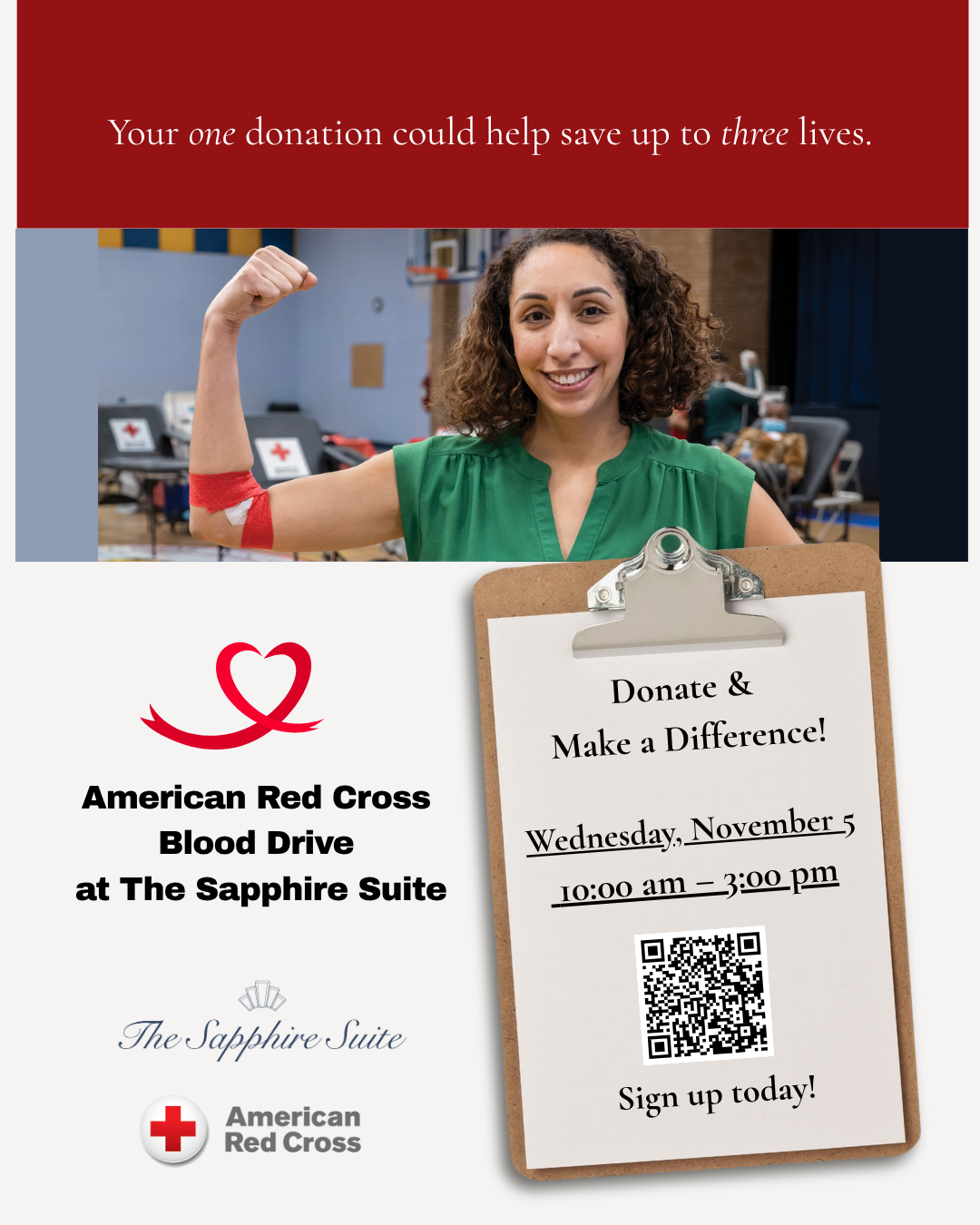 join us to make a difference - american red cross blood drive at the sapphire suite