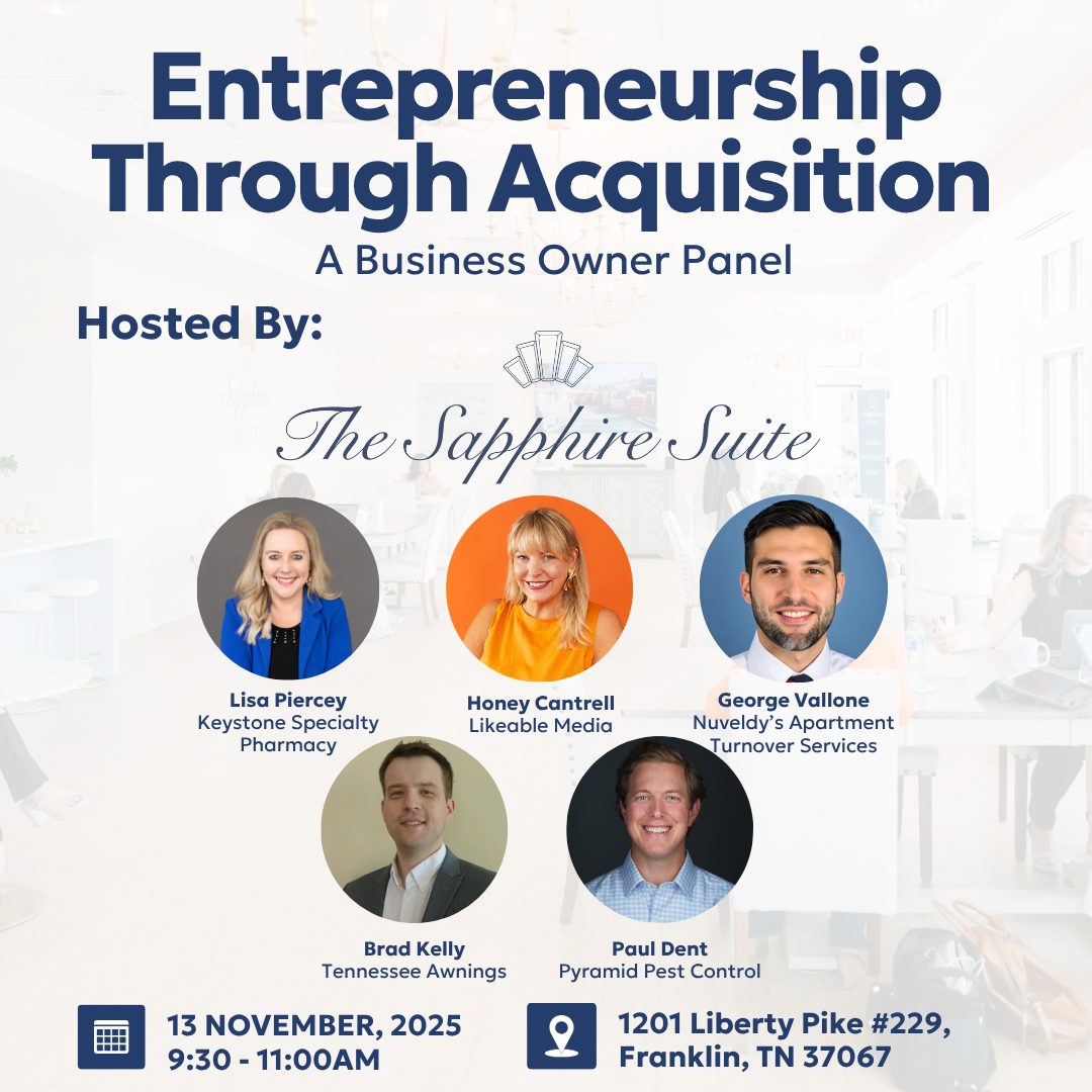 Join us for a panel discussion with successful acquisition entrepreneurs who are now running local small businesses! After a brief panel discussion the floor will be open to your questions. Learn about their search models, their businesses, and their past and present challenges.
